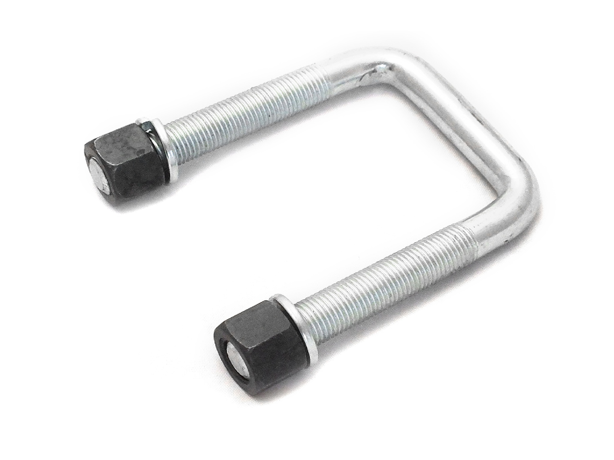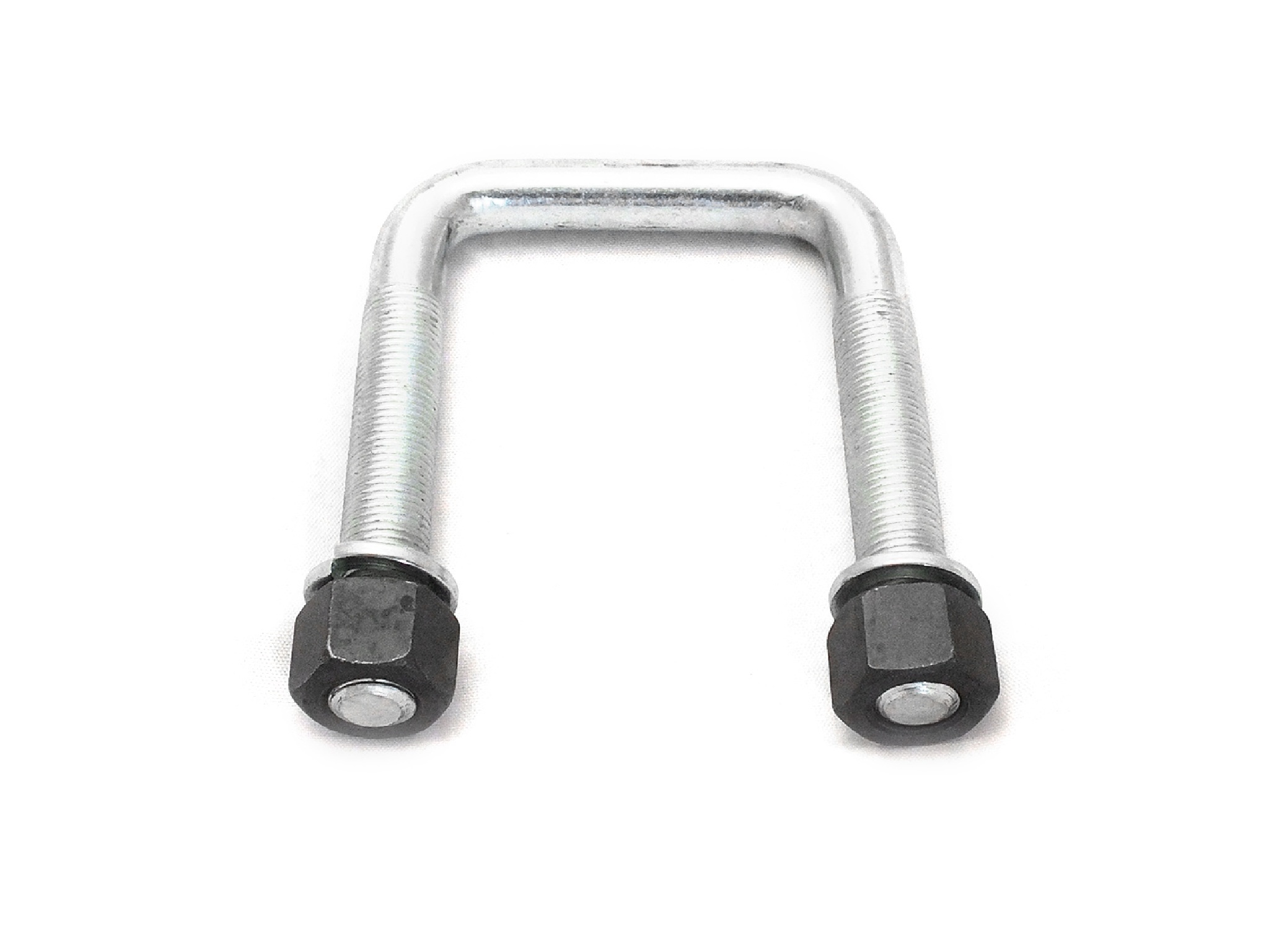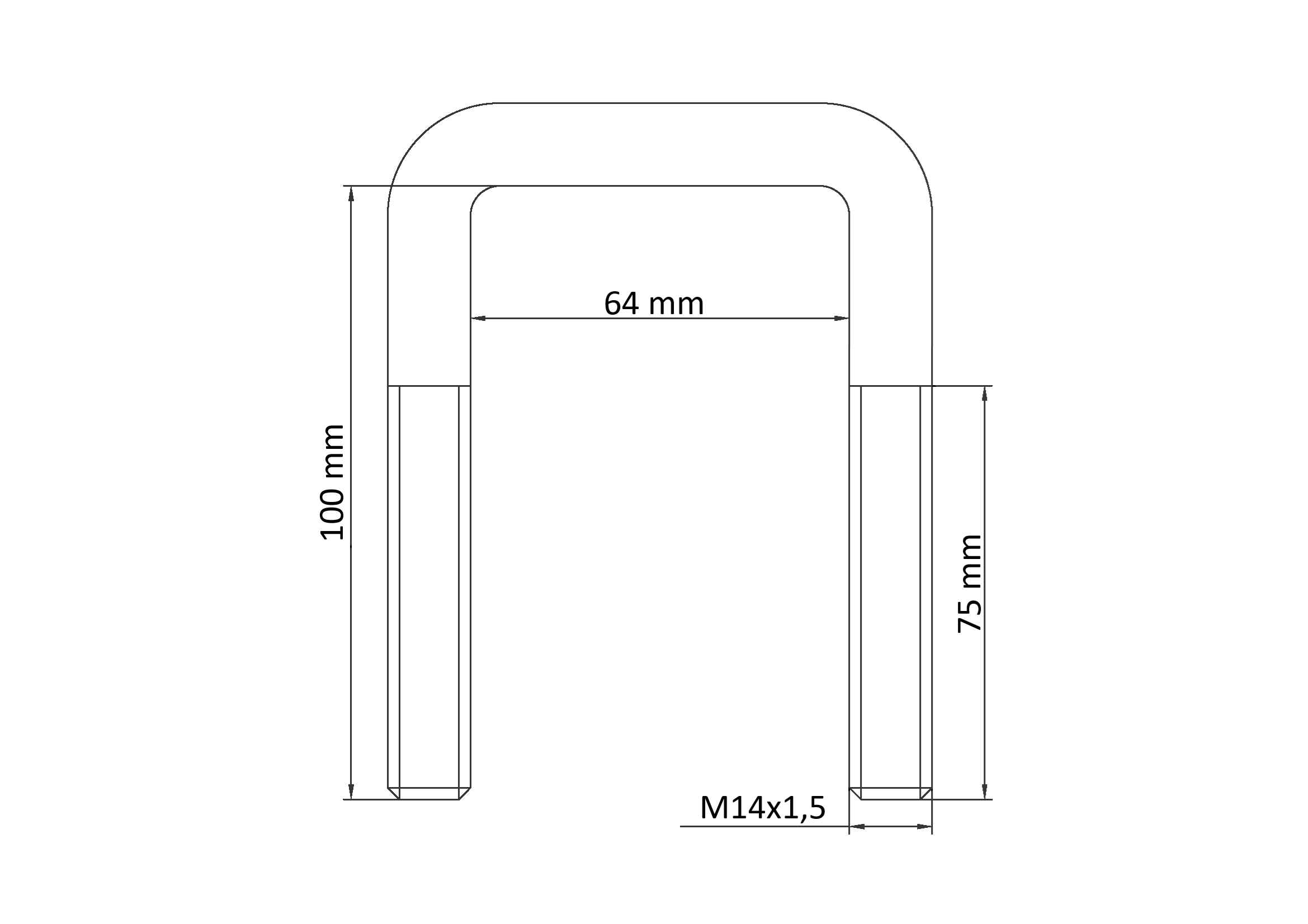 Strzemiona M14x1,5 64×100 mm zostały uformowane poprzez zagięcie pręta pod kątem prostym, co umożliwia ich precyzyjne dopasowanie do płytki dociskowej umieszczonej na resorze. Górna część pręta ma prosty odcinek, który zapewnia równomierne przyleganie elementu do powierzchni płytki.