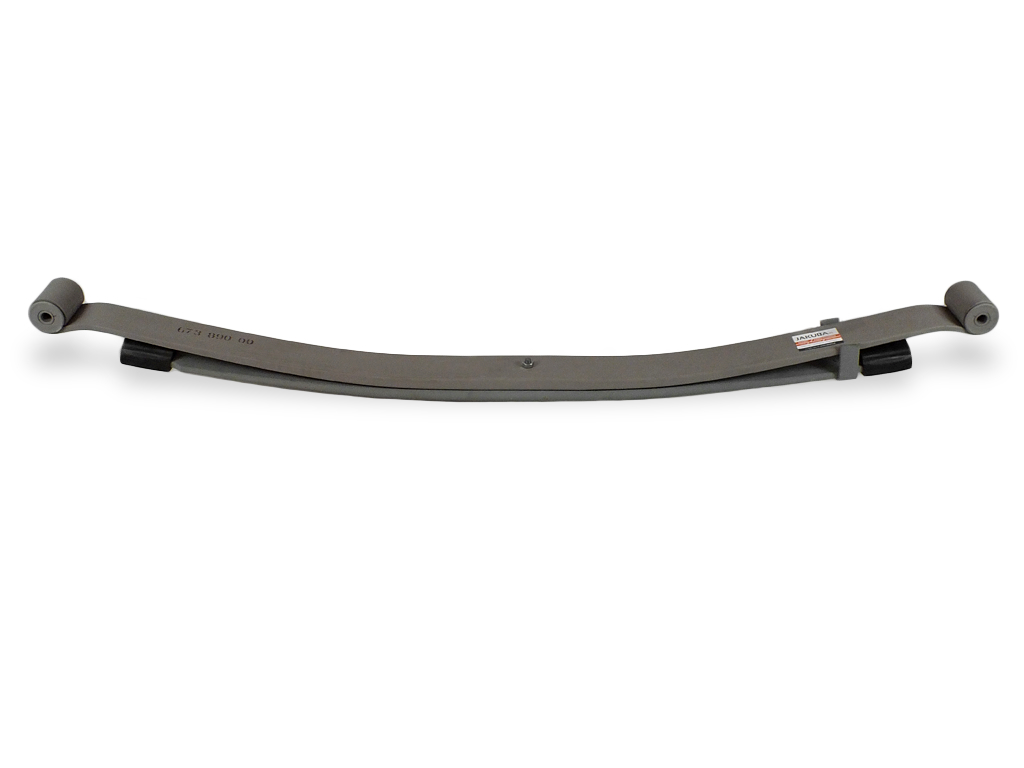 Zestaw na jedną oś zawiera: 2 pióra wzmacniające, 4 strzemiona, 4 poduszki / odbojniki na końcach piór, 2 śruby centralne do połączenia piór wzmacniających z resorem.
